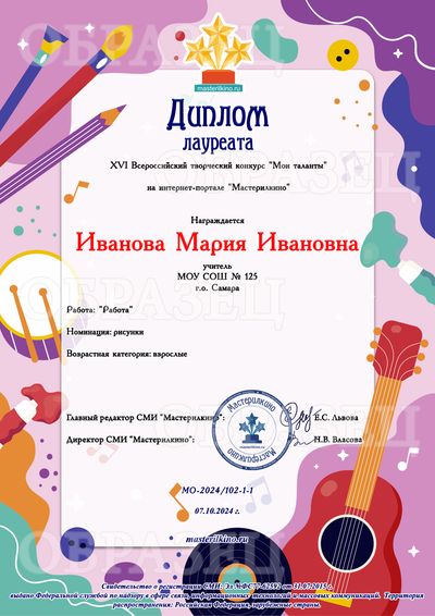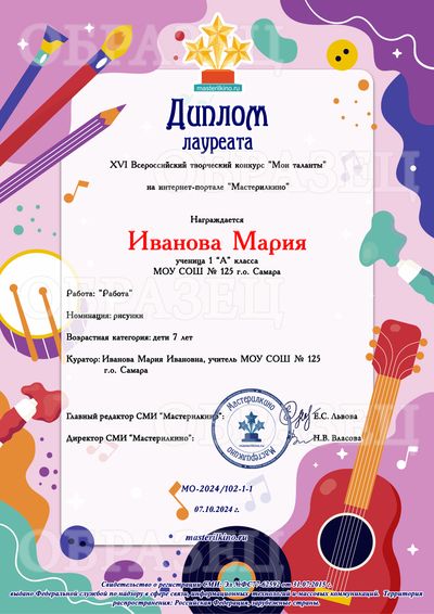 Свидетельство о публикации материала - 100 рублей. Свидетельство выдается автору работы, т.е. если автор работы - ребенок, то документ будет выдан на имя ребенка. Если автор работы - взрослый, документ оформляется на имя этого взрослого.