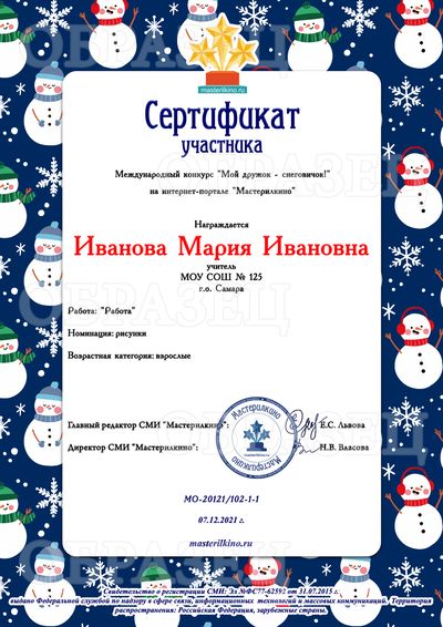 Приглашаем Вас на наш VI Всероссийский творческий конкурс "Мой дружок - снеговичок!"