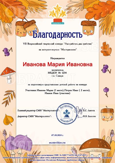 * Благодарственное письмо педагогу, заявившему 15 и более детских работ одновременно, оформляется бесплатно в электронном виде! Участвуйте группами!