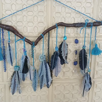 джинсовые перья синей...